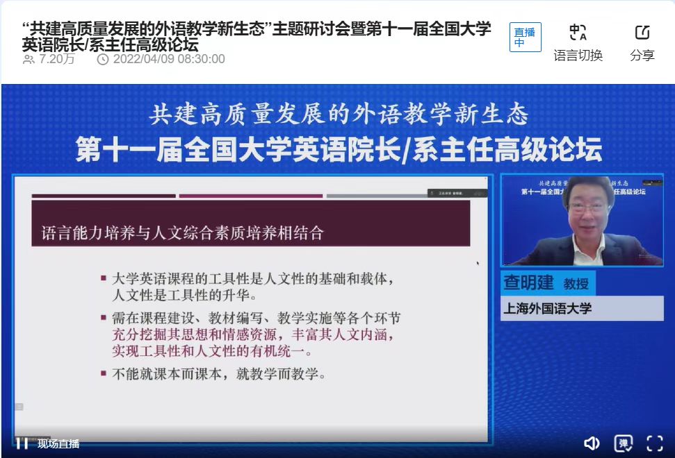 组织全体教师参加第十一届全国大学英语院长/系主任高级论坛。此次论坛由教育部高等学校大学外语教学指导委员会、云南大学、上海外国语大学主办,上海外语教育出版社承办,主题为“共建高质量发展的外语教学新生态”,设主旨报告、专题报告、平行论坛三大模块。