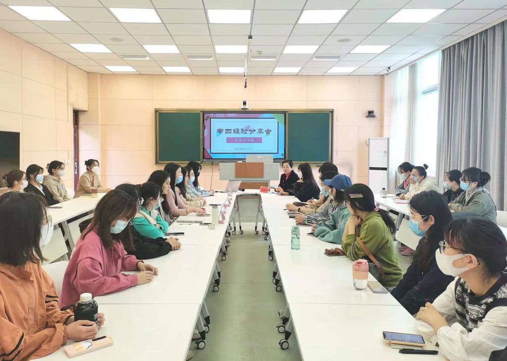 在人文楼603举办英语专业四级考试经验分享会。会议由英语系主任崔淑丽主持,学院英语、翻译专业学生通过线上、线下相结合的方式参加了分享会。