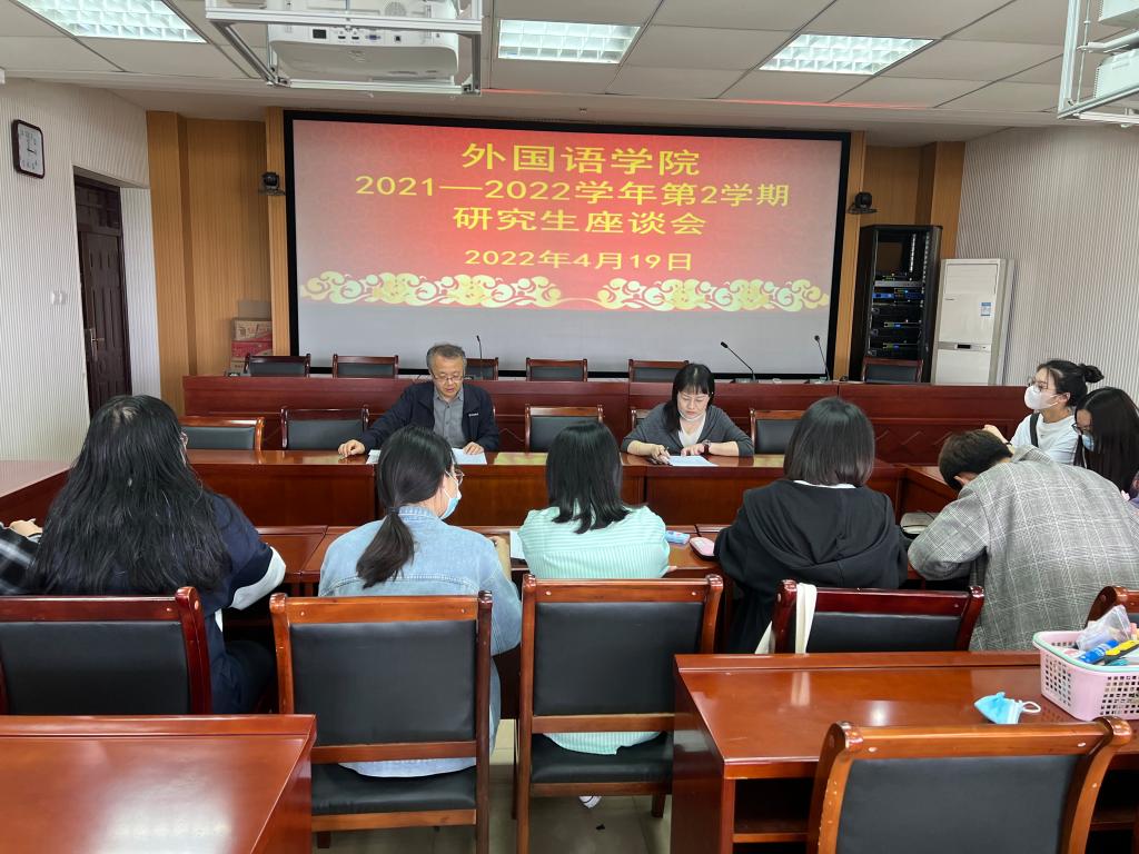 副院长吴向东、研究生工作秘书刘怡露在人文楼六楼会议室主持召开学生座谈会,各班学生代表参加了座谈会。