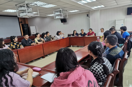 英语系在人文楼六楼会议室召开《综合英语》课程师生座谈会,英语系全体教师、教务办相关同志和2019级英语、翻译专业学生代表参会。会议由系主任余运伟主持。