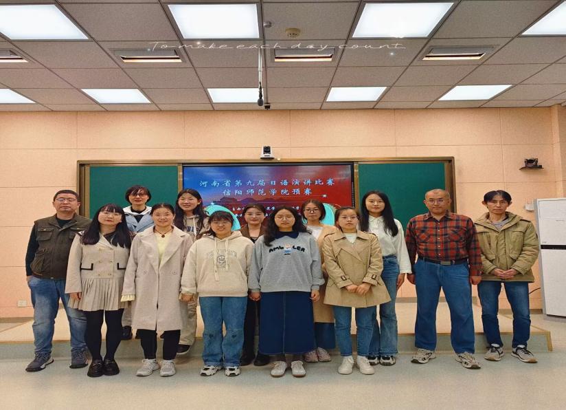 4月25晚,河南省第九届日语演讲比赛信阳师范学院预赛在人文楼603教室举行,日语系张鸿鹏、李静(博士)、薛晓燕等5位教师及学生代表参加了此次活动。