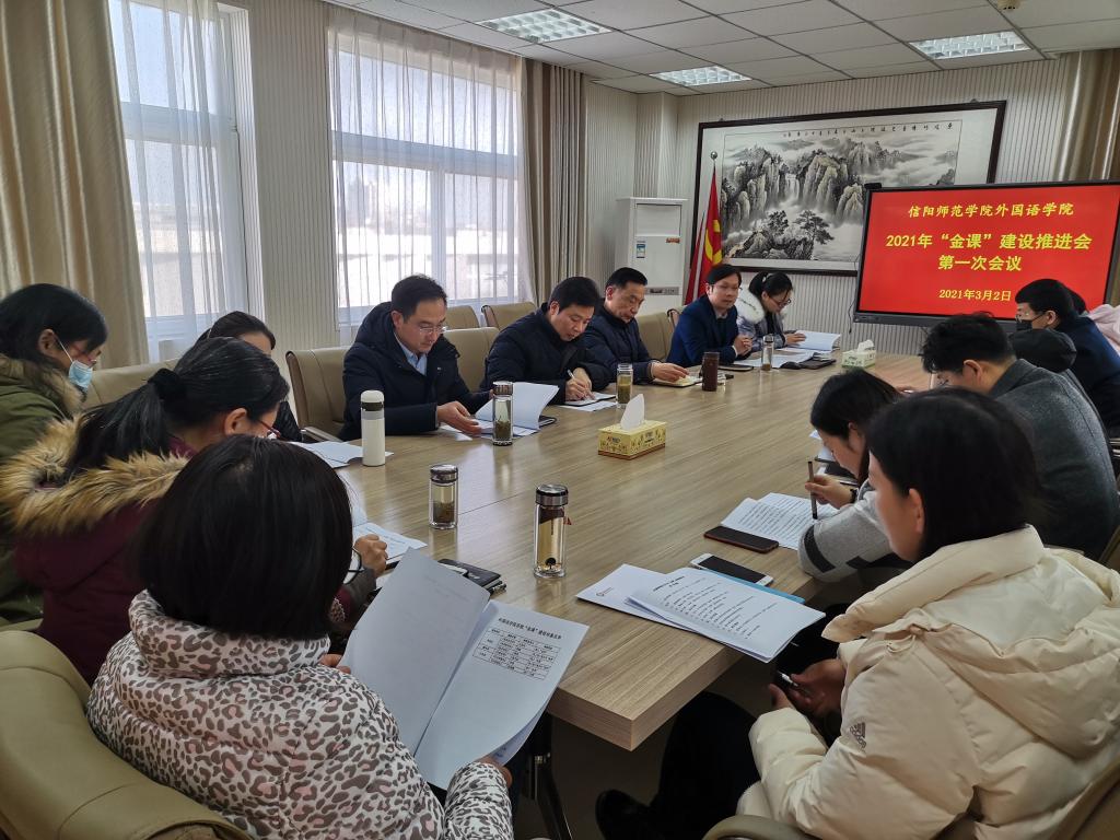 在人文楼五楼会议室召开2021年度“金课”建设推进会第一次会议。学院领导、系/室主任、督导专家、“金课”课程负责人、教务办同志们参加会议,会议由学院党委书记周学红主持。