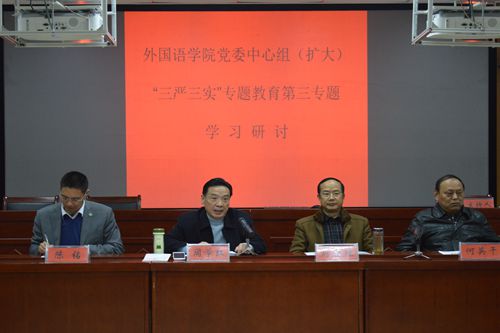 党委在人文楼六楼会议室举行了“三严三实”专题教育第三专题学习研讨暨党员党大会。院党委书记周学红,院长刘世理,副院长何英干,党委副书记陈铭及全体教职工党员参加会议。会议由周学红主持。