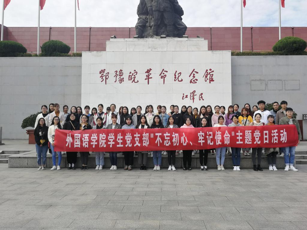 10月27日上午,学院全体学生党员前往信阳市鄂豫皖红色革命纪念馆开展“不忘初心、牢记使命”主题党日活动。带着对革命先烈的崇高敬意,全体学生党员依次参观了大别风雷星火燎原、红军摇篮将军故乡、红色苏区共铸辉煌、红色土地艰苦卓绝等展厅,并在庄严肃穆的纪念馆前,在革命先烈的见证下,面向党旗庄重宣誓,坚定了为共产主义事业奋斗终生的信心与决心,力争做好新时代中国特色社会主义事业接班人。