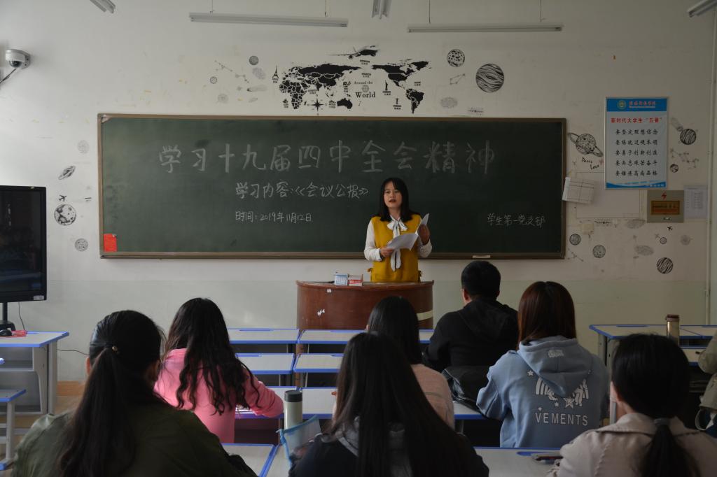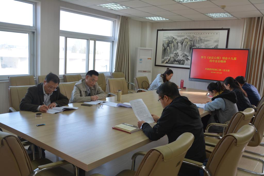 各党支部分别在五楼、六楼会议室及人文楼各教室组织召开支部党员大会,认真学习贯彻党的十九届四中全会精神。