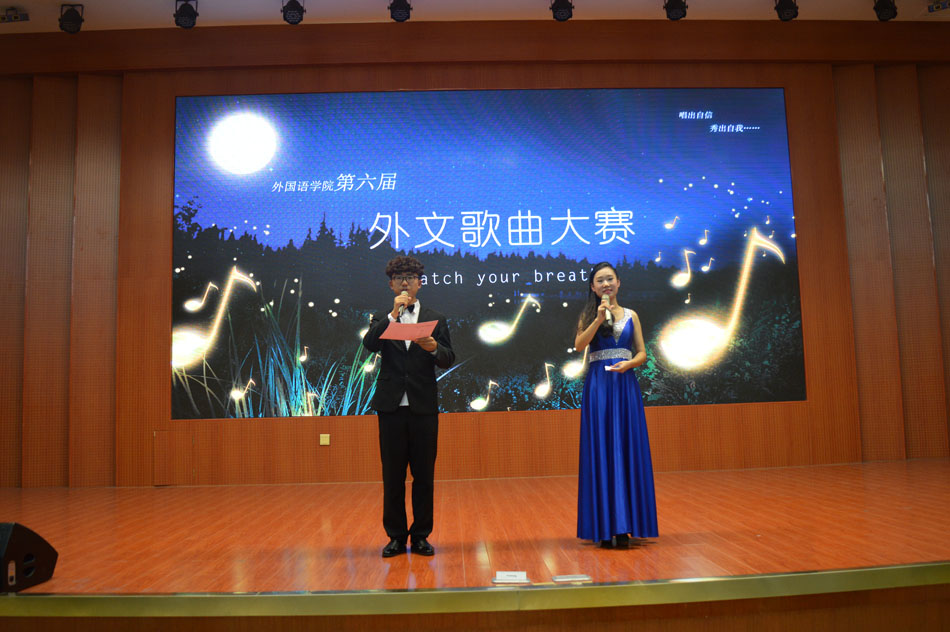 本次比赛以“唱出自信,秀出自我”为主题,共分为歌曲演唱和才艺展示两个环节,内容丰富,形式多样。歌曲演唱涉及英语、日语、韩语等语种,选手们饱含感情的演唱和俏皮逗趣的幻灯片展示,让人们眼前一亮,其中由选手黄午宵演唱的《Because of you》,极具爆发力的嗓音加上富有摇滚气息的曲风high翻了全场,而曹一姝的《For No Reason》悠扬的曲调,加上深情的演唱,给观众留下了深刻的印象。在才艺展示环节,选手们更是各出奇招,饱含感情的诗朗诵、城南旧事秀贞独白以及现场书法表演等把现场气氛推入高潮。