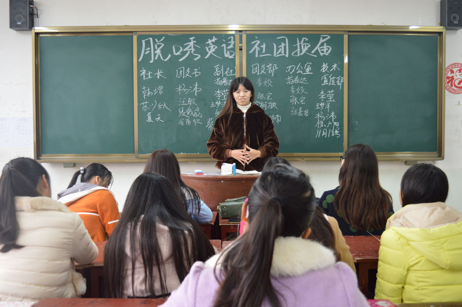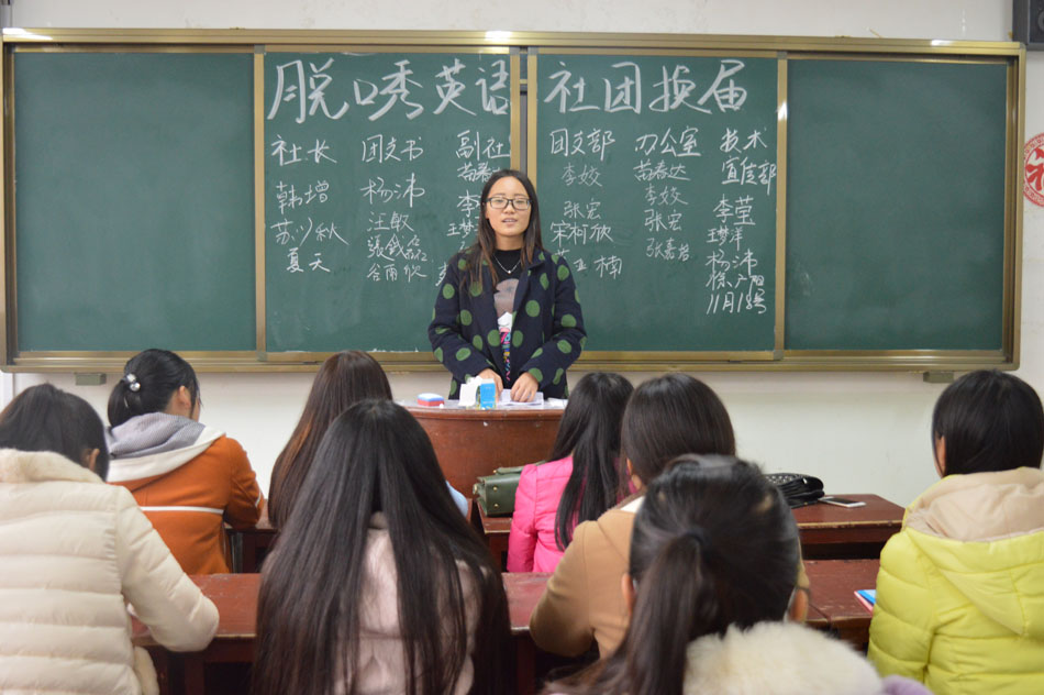 英语脱口秀社团在人文楼104教室进行2015-2016学年换届,社长魏晓莉携本社全体成员参与,大会由副社长夏天主持。