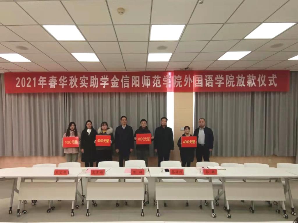 仪式上,高彦伟宣读《信阳师范学院免费成人影片 关于公布2021年春华秋实助学金受助学生名单的决定》,与会领导老师为受资助学生逐一发放助学金。