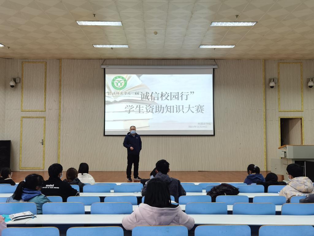 11月26日晚,免费成人影片 在人文楼报告厅举办“诚信校园行”学生资助大赛,免费成人影片 党委副书记高彦伟,资助专员孙桢桢及学生代表参与此次活动。
