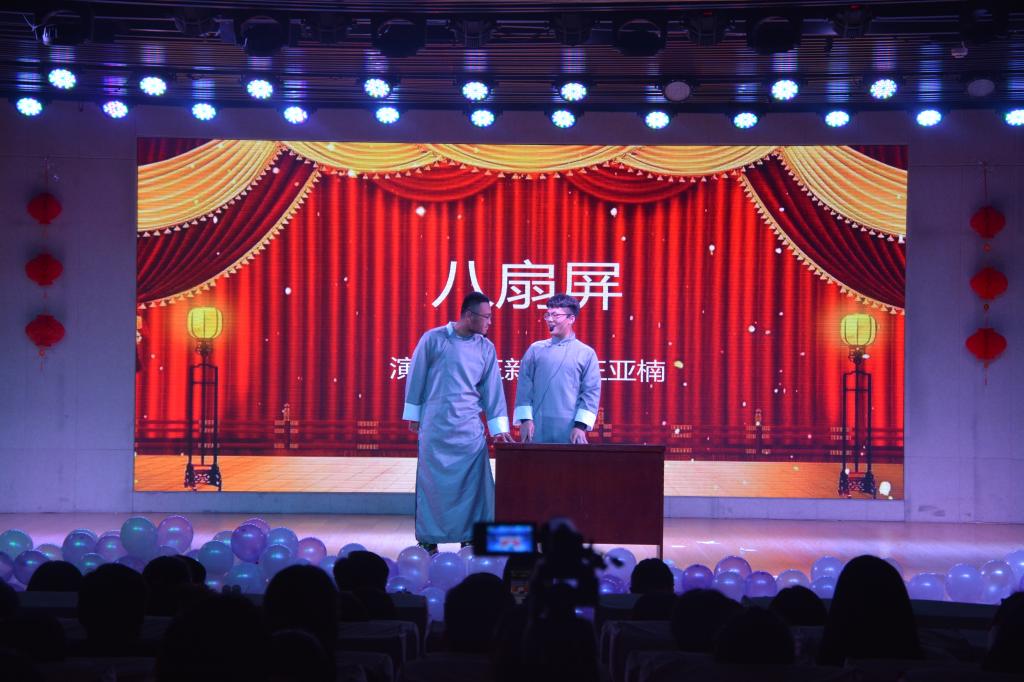 学子青春追梦的风采;小品《求求你相信我》《招聘》在轻松幽默的氛围中引导同学们诚信做人、诚信做事;相声《八扇屏》用诙谐幽默的语言,令现场观众在捧腹大笑的同时也有思考与感动;乐器合奏《彩云追月》充分展现了中国古典乐器之美;舞蹈《Tik Tok 》 《Electric Kiss》跳出了青春的舞步和靓丽风姿;歌曲串烧《年少有为》《蒲公英的约定》《房间》《等你下课》风格各异,青春洋溢,婉转动听;朗诵《青春进行时》展现了学子们的青春朝气和活力,也表明了学子们用奋斗续写青春华章的决心。晚会在大合唱《仰望星空》中落下帷幕。