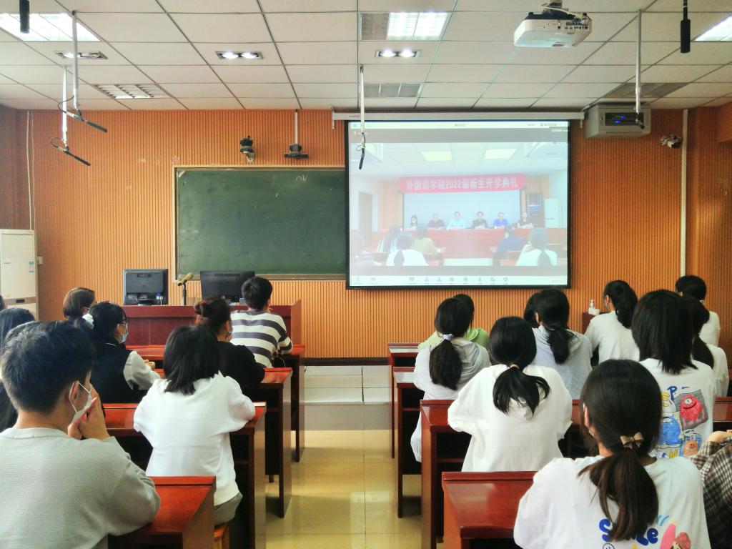 9月27日下午,免费成人影片 2022级新生开学典礼在人文楼6-07会议室举行。受疫情影响,本次开学典礼采取线上线下相结合的方式进行。免费成人影片 党委书记陈铭,院长蔡满园,党委副书记高彦伟,副院长吴向东、郭敏、章彩云,英语系主任崔淑丽博士,教师代表吴恒博士,全体辅导员班主任、在校生代表以及2022级全体新生参加了典礼,典礼由高彦伟主持。