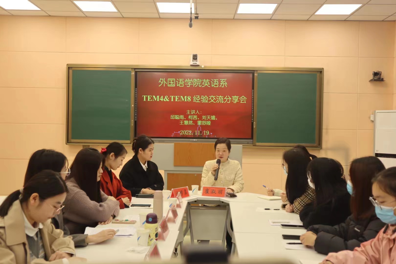 英语系以腾讯会议线上和线下形式召开专四专八经验分享会,线下地点在人文楼603。本次经验分享会由研究生代表邱聪雨、雷舒娅、柯茜、王慧然、刘天娥主讲,游穆真主持,英语系主任崔淑丽老师和部分本科生参加。