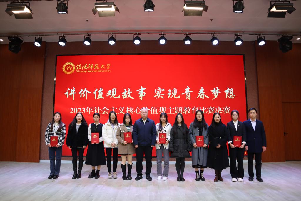 2023年“讲价值观故事 实现青春梦想”社会主义核心价值观主题教育比赛决赛在人文楼报告厅举行。学院党委副书记高彦伟,王燕博士、任萌萌博士以及辅导员周旋、孙桢桢、郗金月参加了此次活动。