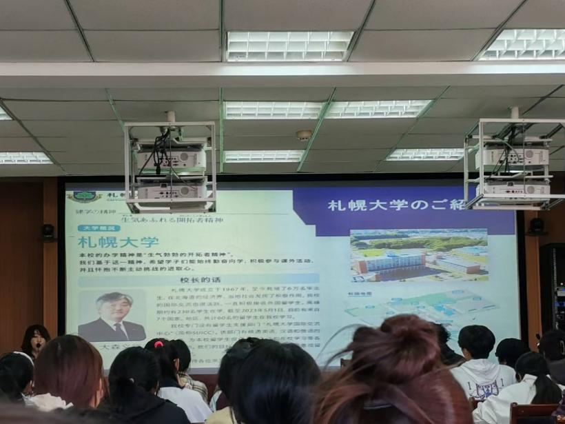 的一年交换留学项目和2+2留学项目进行了详细介绍,特别针对同学们普遍关心的入学申请条件和专业选择相关事宜进行了深入解读。在互动交流环节,野中科长还耐心解答了同学们的提问,消除了同学们对赴日留学生活及专业发展前景等方面的疑问。