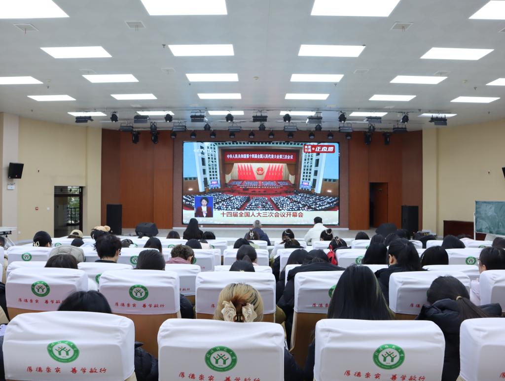 为深入学习贯彻2025年全国两会精神,引导广大师生关心国家发展、关注时政热点。3月5日上午,学院组织师生代表在五育大讲堂集中观看2025年全国两会开幕会直播。学院党委副书记高彦伟、专兼职辅导员及100余名学生代表参加活动。