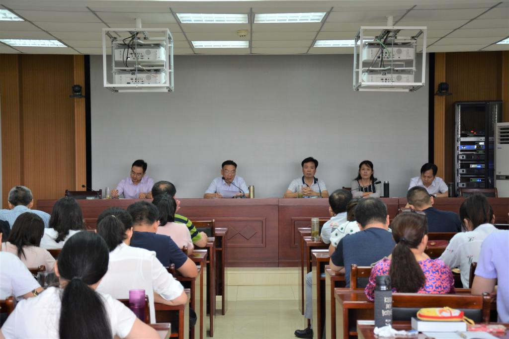 会上,院长蔡满园向全体教职工传达了新学期学校中层干部大会会议精神,并结合学院实际以“做学习型教师,让读书成为教师的自觉”为题作主题报告,对新学期学院工作做了总体安排。蔡满园在报告中指出,面对学校事业发展面临的新形势、新挑战,全体师生必须齐心协力、攻坚克难。他号召全体教职工要切实发扬主人翁精神,以高度的责任感和使命感,以时不我待的紧迫感和奋斗精神,全力推动学院教学、科研、学科建设和人才培养等各项工作再上新台阶。他希望全体教职工牢固树立终身学习意识,将读书学习作为一种习惯与自觉,持续提升自身理论水平,增加知识储备,升华人生境界;专业课教师要积极响应教育部“打造金课、淘汰水课”的号召,通过不断学习,持续更新教育观念,主动开展教学改革,推动学院人才培养质量稳步提升;管理人员也要加强学习,不断提高管理与服务水平。