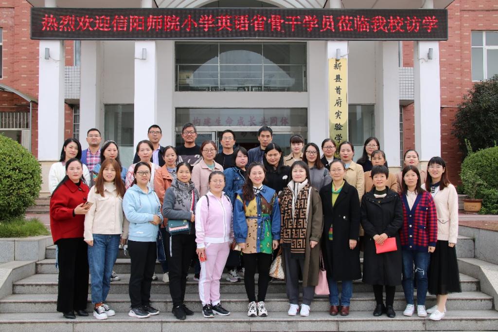 学员们首先来到新县首府实验学校开展课堂教学现场观摩。黄庆友校长带领学校领导班子热情接待了带队老师和全体参训学员,陪同参观了校园并与全体学员合影留念。随后该校孔誉璇老师在学校录播教室给大家展示了一节轻松高效的英语观摩课——Welcome Back to School。活跃的课堂气氛、精心的教学设计感染了在场的每一位听课教师,受到了大家的一致认可和好评。课后,学员们纷纷走上讲台,热情地围住孔老师,分享感受和体会。