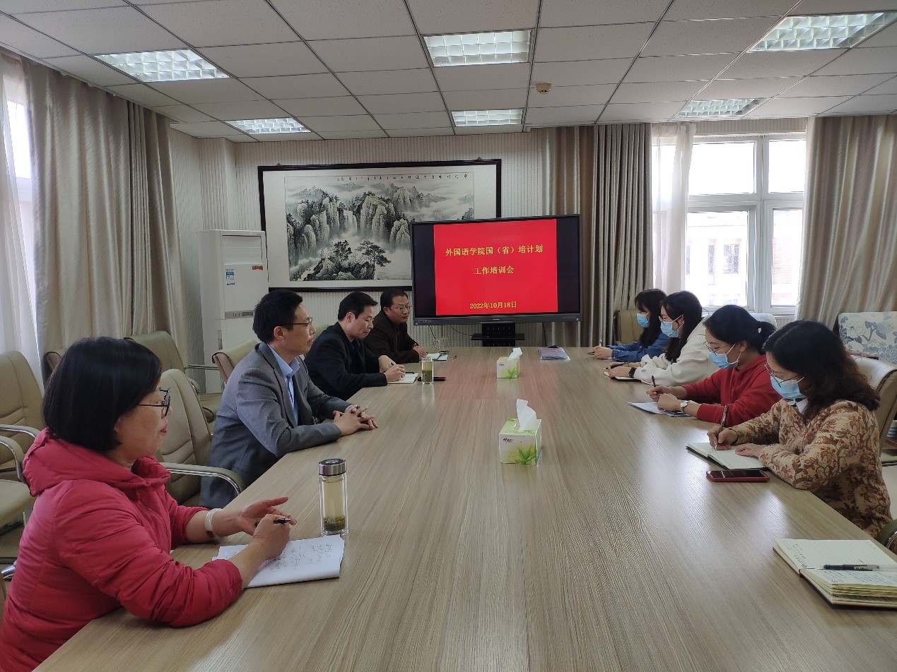 在人文楼5-01会议室召开2022年度“国培计划”“义务教育素质提升工程”项目实施工作培训会,学院党委书记陈铭、院长蔡满园、副院长余永锋、学院项目实施首席专家余运伟老师及国培项目班主任参加本次会议,会议由余永锋主持。