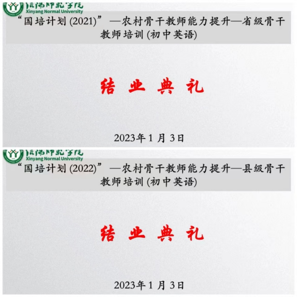 学员代表,来自禹州市小吕镇中心学校代改红、濮阳市高阳实验学校的张欣欣老师分别代表“国培计划(2021)”初中英语省级骨干教师培训班、“国培计划(2022)”初中英语县级骨干教师培训班发言,表示将带着责任,不断锤炼自己,不断提升自我,真正成为学校的骨干教师。在自己最普通的岗位上倾尽爱心和智慧,努力为基础教育发展贡献青春和力量。班主任杨恩莲、李小静分别发言感谢大家共同的坚持坚守,希望各位学员带着此次培训的新理念、新方法,带着对教育事业美好未来的期盼,不断锤炼自己,早日实现梦想追求。