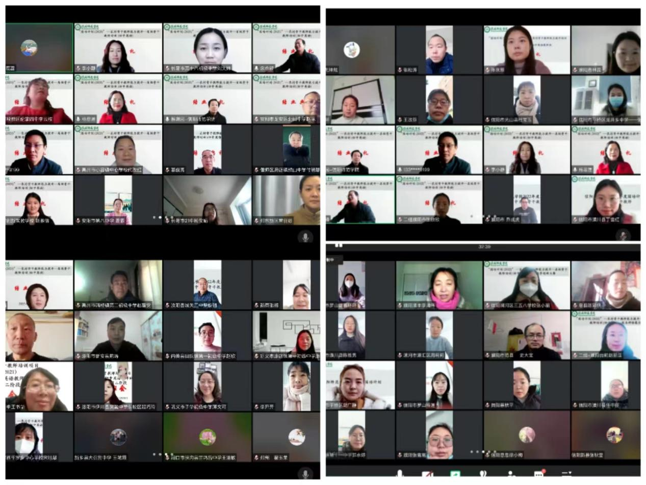 自2022年12月15日开班以来,按照河南省教育厅总体部署和学校工作要求,坚持“只改变培训模式,不改变培训目标”的原则,依托信息化网络平台工具,先后邀请华中科技大学徐锦芬教授、河南师范大学王彩琴等专家学者与多名一线教学名师开展线上培训,同时辅以同步答疑、自主学习、分组研讨、导师带教、课程展示等实践教学活动,确保了线上培训工作全面有效实施和培训活动的科学规范,圆满完成各项培训任务,得到了参训学员的一致认可与好评。