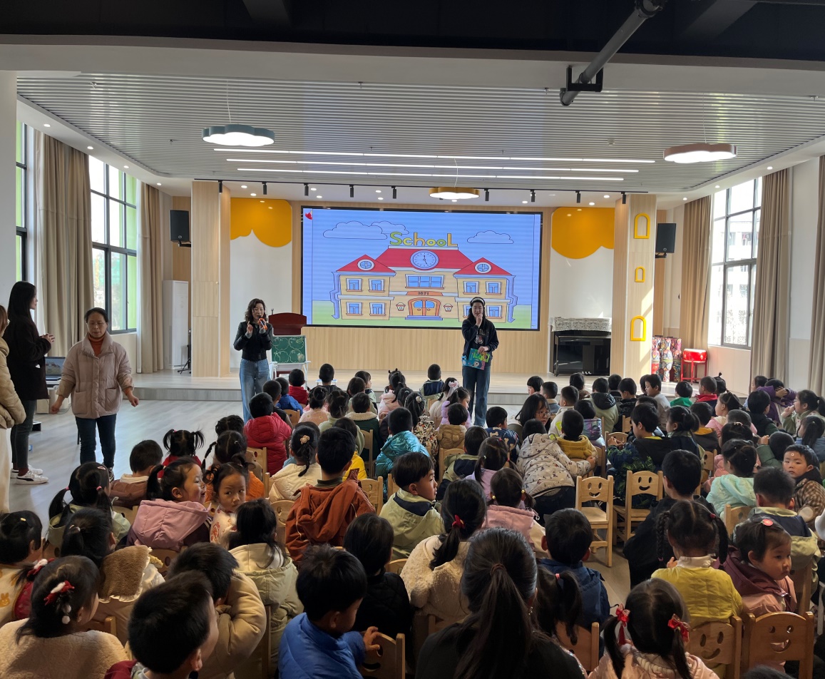 志愿者在郭敏副院长的带领下,走进附属幼儿园开展少儿英语启蒙活动。课堂上,志愿者们通过PPT展示、你问我答、分组活动等多种形式和小朋友们进行英语口语互动。在对基本的单词讲解之后,志愿者们带领小朋友们学唱英文歌,在韵律欢快的英文儿歌声中有效引导孩子们正确发音,激发他们对英语的学习兴趣。