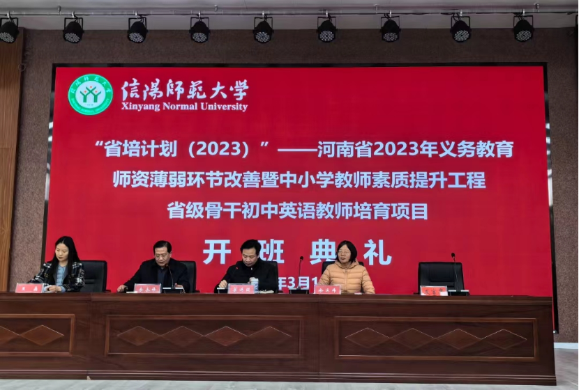 2024年3月11日上午,“省培计划(2023)”省级初中英语骨干教师研修班在外语学院人文楼报告厅隆重召开。院长蔡满园,副院长余永锋,班主任余运伟、王磊出席了开班典礼。典礼由余永锋主持。
