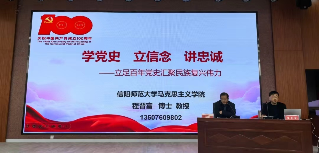 开班典礼结束后,马克思主义学院副院长程晋富教授为参训学员作了题为《学党史 立信念 讲忠诚——立足百年党史汇聚民族复兴伟力》的开班第一课专题讲座。