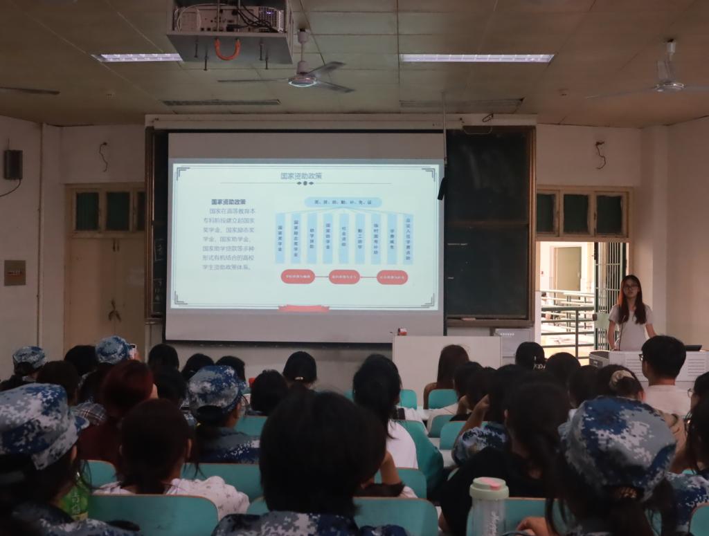 宣讲会上,学生资助宣传大使结合自身经历,围绕高校国家助学贷款、国家奖学金、国家励志奖学金、国家助学金、学校奖学金、绿色通道、服兵役高等学校学生国家教育资助等方面向新生详细讲解资助政策,并对学生进行了诚信教育。宣讲结束后,学生资助宣传大使对大家提出的相关问题做出详细的解答。