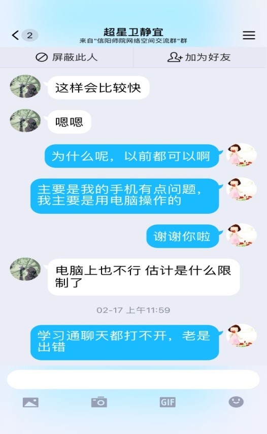 (图四:学生们在QQ中咨询互评遇到的问题和沟通解决办法)