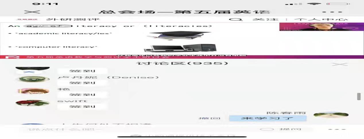 “十四五”时期,我国教育进入高质量发展阶段。为进一步促进学生核心素养发展,发挥不同评价机制和方式在课堂教学中的作用,推动构建“教-学-评”一体化的教育生态,实现多元评价、有效教学、全人发展,北京师范大学外国语言文学学院和外语教学与研究出版社将于2022年4月15—16日举办“第五届英语教学与测评学术研讨会”。公外语教研室部分教师积极参加第五届英语教学与测评学术研讨会,提高自己学术理论水平。本次会议的主要议题考试评价改革、核心素养测评的理论与实践、基于核心素养的课堂活动设计与评价、诊断性测评与课堂教学的融合、中国英语能力等级量表的应用、在线教学与测评、自主学习能力培养和测评、评价工具的建构及其应用、教师测评素养发展;会议主要内容有4场主旨发言、7场专题发言、6个平行分会场、12节课例展评、2组案例论坛、7场特别展示。