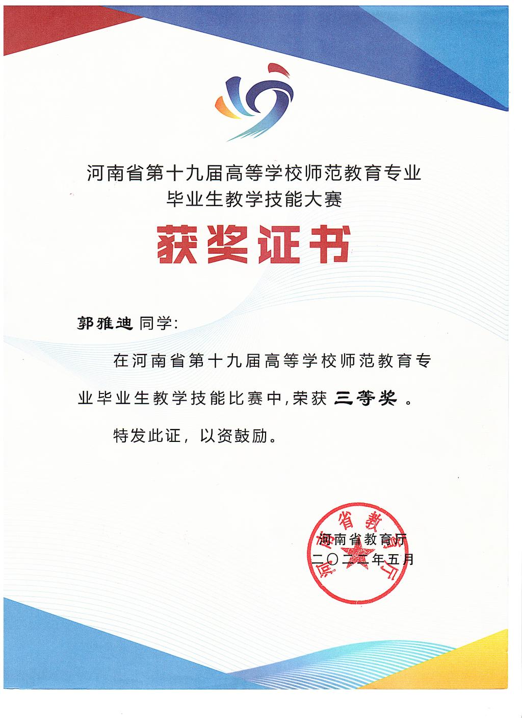 近日,由河南省教育厅主办、周口师范学院承办的第十九届河南省高等学校师范教育专业毕业生教学技能大赛圆满结束。经过校内选拔,省教育厅组织分赛区预选、专家组复审和公示,免费成人影片 2018级英语专业学生黄玉杰和郭雅迪同学分获二、三等奖。