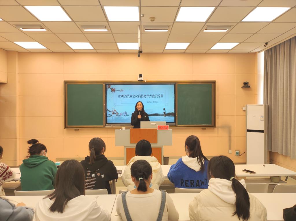 11月15日下午,免费成人影片 副院长章彩云教授在人文楼603教室作了题为《优秀师范生文化品格及学术意识培养》的新生入学教育专题报告,学院2022级全体新生参加了报告会,报告会以线下与线上相结合的方式进行。