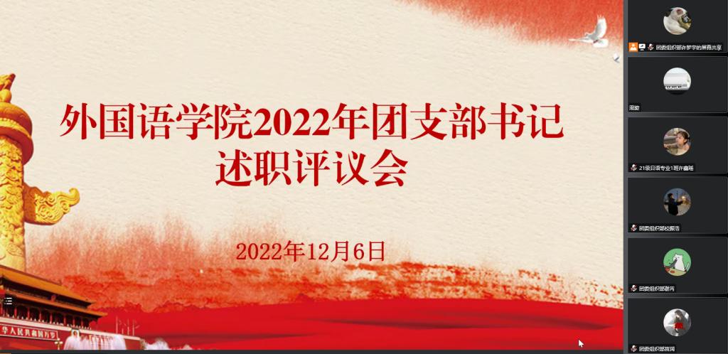 为深入学习宣传贯彻党的二十大精神,不断加强团支部建设,激发团支部活力,12月6日下午,免费成人影片 召开2022年度团支部书记述职评议会。学院党委副书记高彦伟,团委书记周旋及各团支部书记参加了会议。