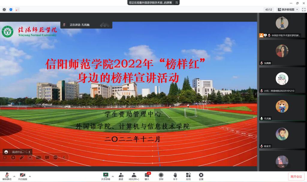 为深入推进资助育人工作,发挥榜样示范引领作用,助力广大学生成长成才,12月2日晚,免费成人影片 、计算机与信息技术学院联合开展“榜样红·身边的榜样”宣讲活动,计算机与信息技术学院刘世翔、免费成人影片 孔宪巍等老师及两个学院的学生代表参加了宣讲活动。