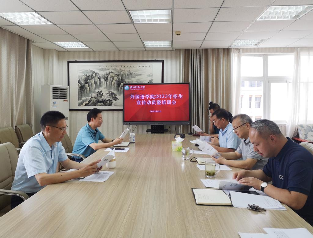 2023年招生宣传动员暨招生咨询培训会在人文楼五楼会议室召开。学院全体领导班子和负责招生相关老师参加了会议。