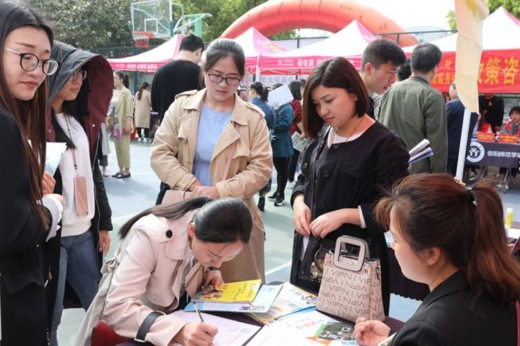 西篮球场举行。本次双选会由河南省教育厅举办,信阳师范学院承办。来自全国14个省市的近300家企事业单位携20000余个就业岗位参加了招聘会,吸引了豫南地区高校毕业生8000余人前来应聘。双选会现场气氛热烈,展位前人头攒动,为各用人单位与求职毕业生们搭建了良好的交流沟通平台。