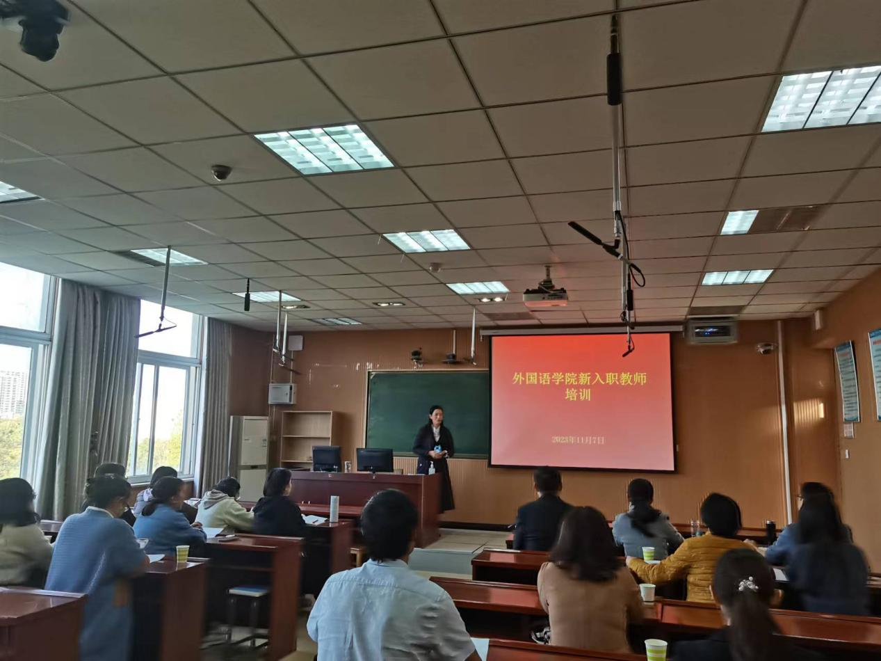 在人文楼507教室召开2023年新入职教师教研培训会。本次培训会由副院长郭敏主持。