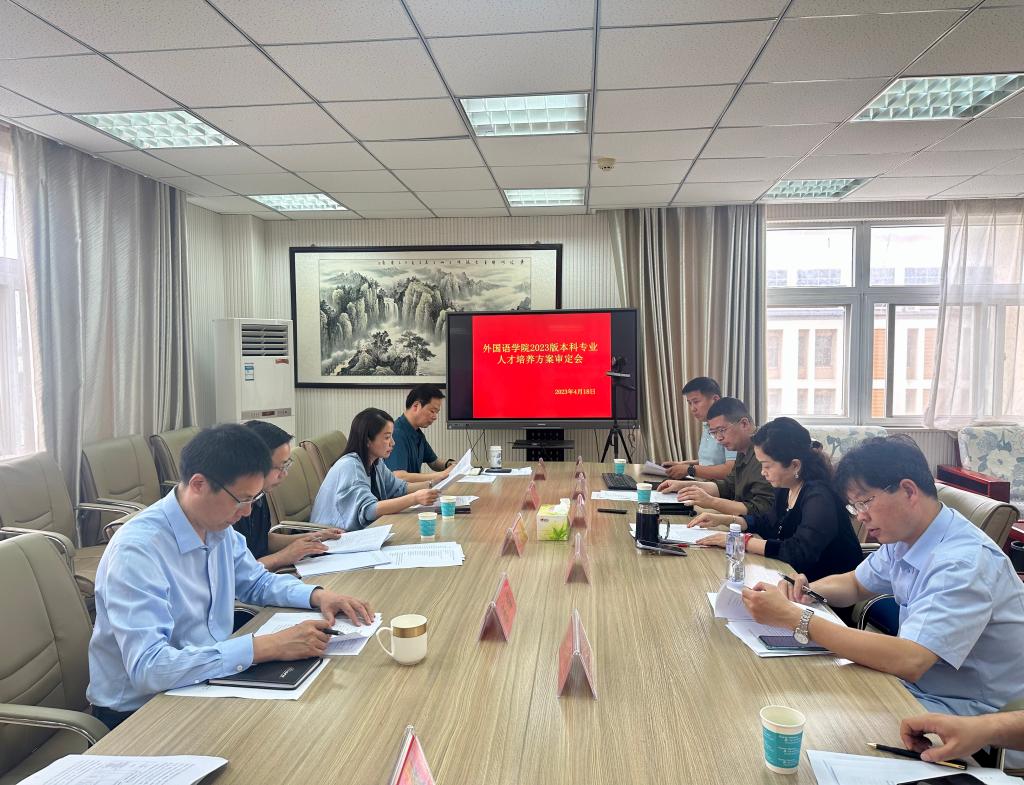 4月18日下午,免费成人影片 在人文楼501会议室召开2023版本科专业人才培养方案审定会。会议邀请了北京外国语大学马会娟教授、首都师范大学焦丹教授、信阳市九中副校长李琰、河南征途国际教育集团人事部张部长、上海星河藤国际教育集团的韩振宇总经理、信阳师范学院教务处副处长周学勇担任审定专家。免费成人影片 领导班子成员及各专业负责人参加了会议,会议由院长蔡满园主持。