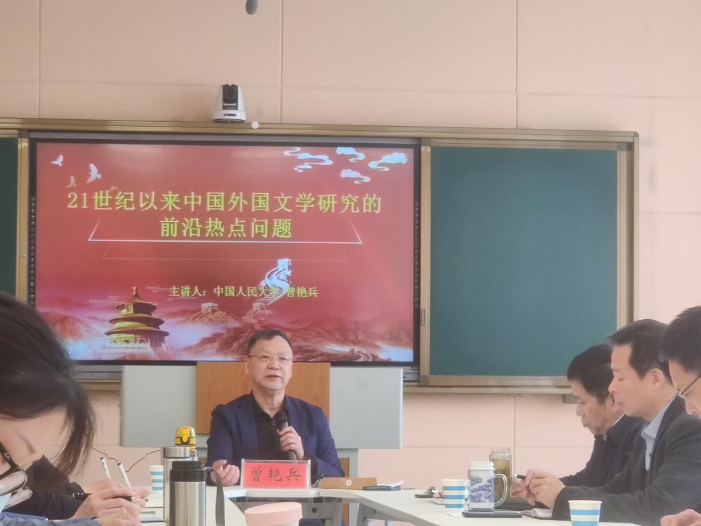 4月12日上午,中国人民大学曾艳兵教授在人文楼603教室作了题为“外国文学研究动态与社科基金项目选题走向”的报告。报告会由学院党委书记陈铭主持,学院100余名师生聆听了报告。